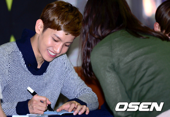 5일 오후 서울 코엑스에서 진행된 동방신기 신규 앨범 출시기념 팬 사인회에서 최강창민이 여성팬에게 정성스럽게 사인을 해주고 있다.
