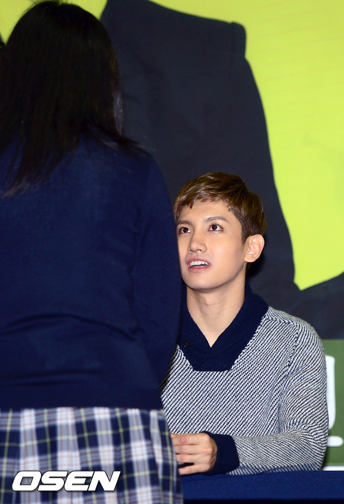5일 오후 서울 코엑스에서 진행된 동방신기 신규 앨범 출시기념 팬 사인회에서 최강창민이 정성스럽게 사인한 앨범을 여성팬에게 전달하고 있다.