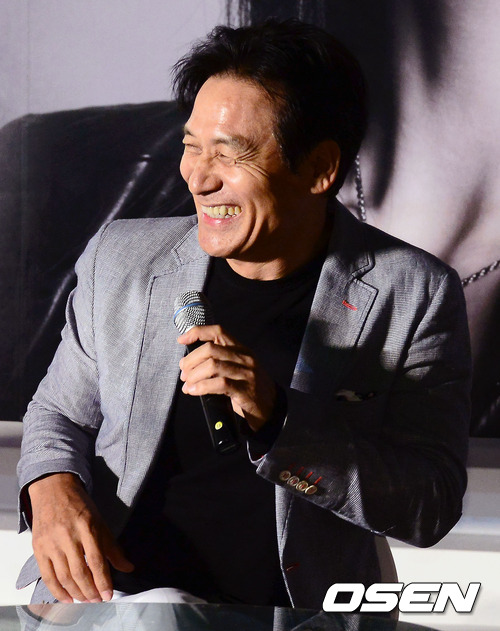 5일 오후 부산 해운대 '비프빌리지' 야외무대에서 열린 오픈토크 행사에서 안성기가 미소짓고 있다.