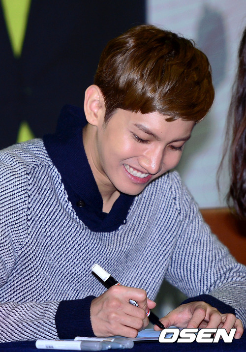 5일 오후 서울 코엑스에서 진행된 동방신기 신규 앨범 출시기념 팬 사인회에서 최강창민이 여성팬에게 정성스럽게 사인을 해주고 있다.