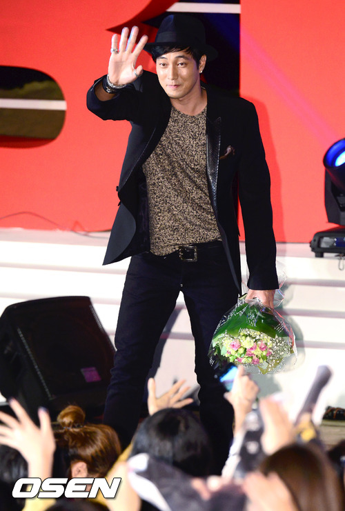 5일 오후 부산 해운대 '비프빌리지' 야외무대에서 열린 영화 무대인사 행사에서 곽도원 소지섭이 팬들에게 인사를 하며 무대를 빠져나가고 있다.