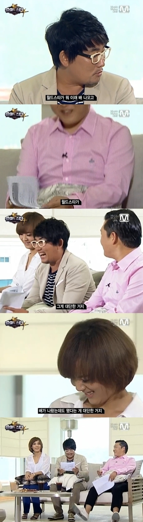 가수 싸이가 배가 나왔는데도 월드스타가 됐다며 자기 자랑을 해 웃음을 자아냈다.