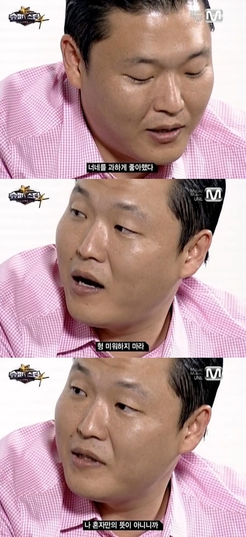 가수 싸이가 엠넷 '슈퍼스타K 4' 딕펑스에게 과하게 좋아한다고 마음을 전했다.