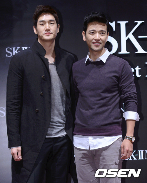 6일 오후 서면 롯데시네마에서 열린 'Meet My milestone-유지태, 남자의 완성을 말하다'행사에서 유지태와 배수빈이 포토타임을 갖고 있다.
