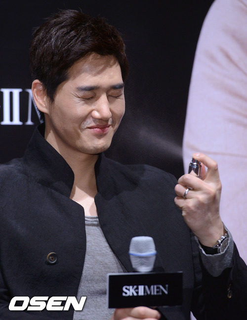 6일 오후 서면 롯데시네마에서 열린 'Meet My milestone-유지태, 남자의 완성을 말하다'행사에서 배수빈이 미스트를 뿌리고 있다.