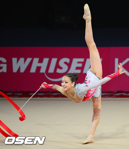 6일 오후 일산 킨텍스 신관 특설무대에서 열린 ‘LG휘센 리드믹올스타즈 2012’에서 손연재가 리본연기를 펼치고 있다.