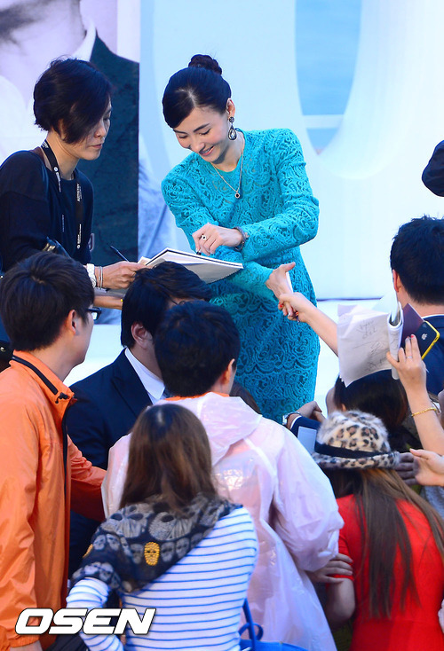 6일 오후 부산 해운대 백사장 비프빌리지에서 열린 영화 '위험한 관계' 오픈토크에서 배우 장백지가 팬들에게 사인을 하며 악수하고 있다.