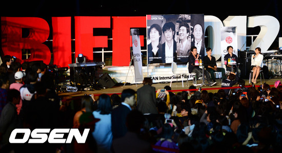 6일 오후 부산 해운대 비프빌리지 야외무대에서 열린 영화 오픈토크 행사에 이병헌 류승룡이 참석하고 있다.