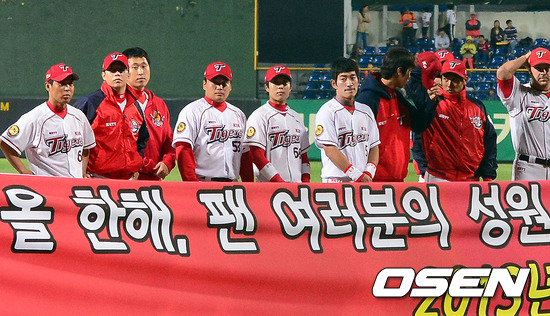 경기 종료 후 KIA 선수들이 관중석을 향해 인사를 하고 있다. / sunday@osen.co.kr
