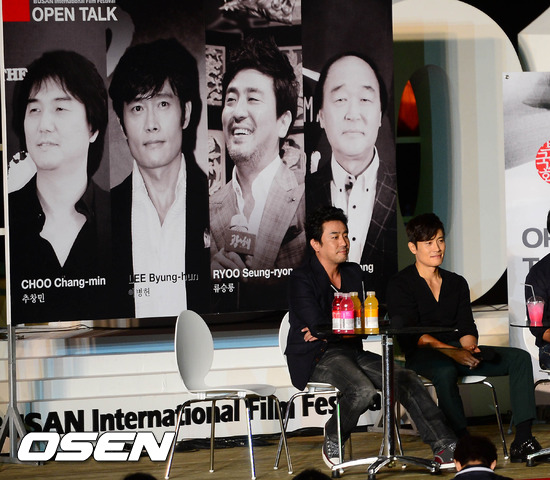 6일 오후 부산 해운대 비프빌리지 야외무대에서 열린 영화 오픈토크 행사에 이병헌 류승룡이 참석하고 있다.