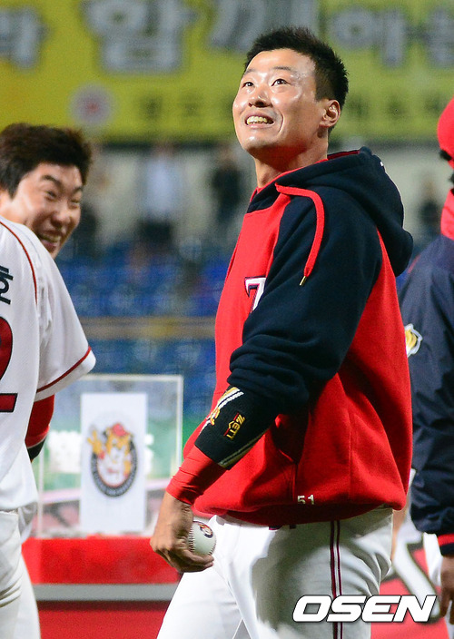 경기 종료 후 KIA 김원섭이 관중석을 향해 사인볼을 던지고 있다. / sunday@osen.co.kr
