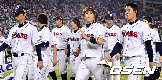 경기 종료 후 두산 코칭 스탭과 선수들이 팬들에게 감사의 인사를 전하고 경기장을 빠져나가고 있다. / youngrae@osen.co.kr