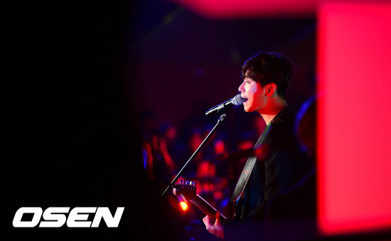 6일 밤 부산 해운대 비프빌리지 야외무대에서 열린 주지훈 콘서트에서 주지훈이 공연을 펼치고 있다.