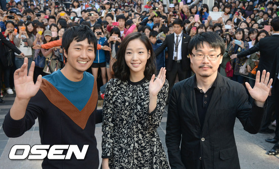 7일 오후 부산 남포동 비프광장에서 열린 영화 '은교' 야외무대인사 행사에서 박해인 김고은 정지우 감독이 부산팬들을 배경으로 포토타임을 갖고 있다.