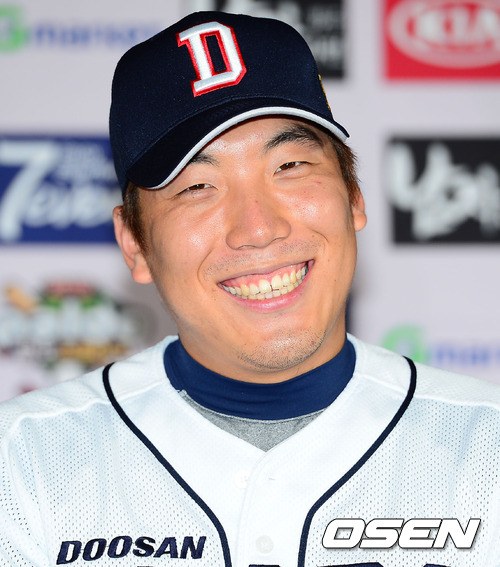 7일 오후 서울 잠실구장에서 진행된 2012 팔도프로야구 준플레이오프 미디어데이에서 두산 김현수가 환하게 미소짓고 있다.