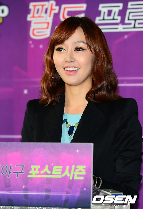 7일 오후 서울 잠실구장에서 진행된 2012 팔도프로야구 준플레이오프 미디어데이에서 김민아 아나운서가 진행을 하며 미소짓고 있다.