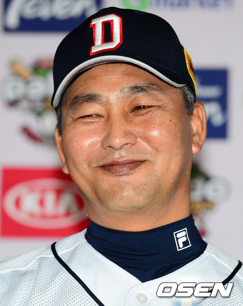 7일 오후 서울 잠실구장에서 진행된 2012 팔도프로야구 준플레이오프 미디어데이에서 두산 김진욱 감독이 환하게 미소짓고 있다.