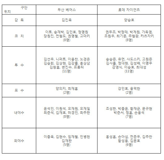 오는 8일부터 5전 3선승제 준플레이오프를 치르는 두산 베어스와 롯데 자이언츠가 26인 엔트리를 발표했다.