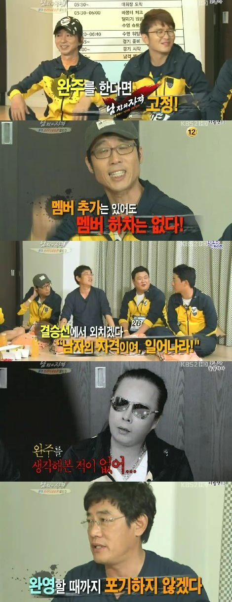 더불어 개그맨 김준호는 "완주시 결승선에서 '남자의 자격' 일어나라를 외치겠다"고 말했고 이경규는 "수영에서는 절대 포기하지 않을 것"이라며 강한 자신감을 보였다.