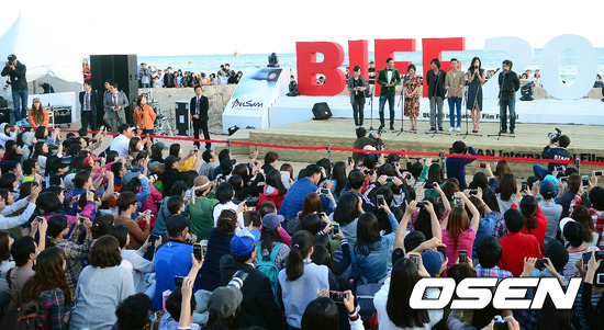 7일 오후 부산 해운대 비프빌리지 야외무대에서 열린 영화 무대인사 행사에서 배우들이 팬들과의 시간을 갖고 있다.