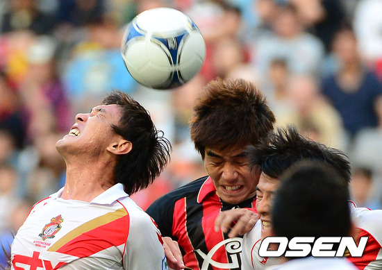 7일 오후 서울월드컵경기장에서 열린 '현대오일뱅크 K리그 2012' 35라운드 FC 서울과 경남 FC의 경기, 전반 서울의 코너킥때 양팀 선수들이 공중볼 다툼을 하고 있다.