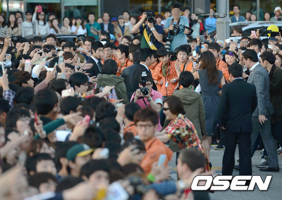 7일 오후 부산 해운대 비프빌리지 야외무대에서 열린 영화 무대인사 행사를 끝낸 전지현이 팬들의 환호를 받으며 행사장을 빠져나가고 있다.
