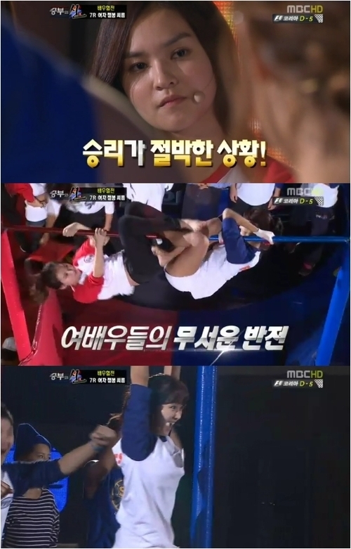 여배우 김윤혜와 한그루가 자존심을 걸고 벌인 철봉씨름에서 치열한 몸부림으로 시청자들을 깜짝 놀라게 만들었다.