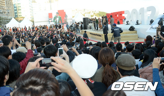 7일 오후 부산 해운대 비프빌리지 야외무대에 수많은 팬들이 영화 무대인사 행사를 지켜보고 있다.