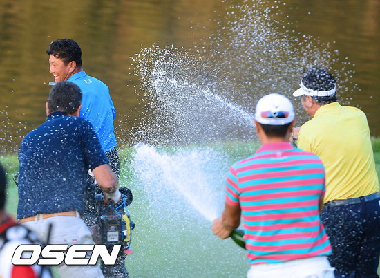 경기후 우승을 차지한 최경주가 후배 배상문과 위창수에게 샴페인 세례를 받고 있다. / soul1014@osen.co.kr