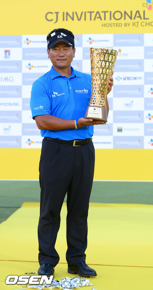한국골프 간판 최경주가 7일 오후 경기도 여주 해슬리 나인브릿지 골프장에서 열린 한국프로골프투어(KGT) CJ인비테이셔널에서 우승하며 2년 연속 우승컵을 들어올렸다.