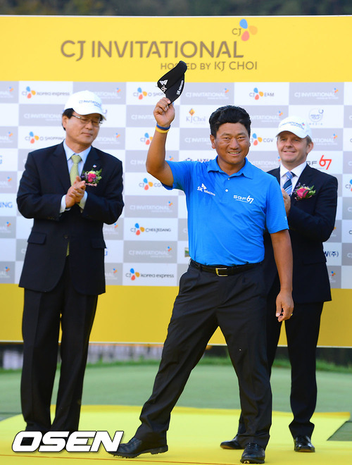 한국골프 간판 최경주가 7일 오후 경기도 여주 해슬리 나인브릿지 골프장에서 열린 한국프로골프투어(KGT) CJ인비테이셔널에서 우승하며 2년 연속 우승컵을 들어올렸다.