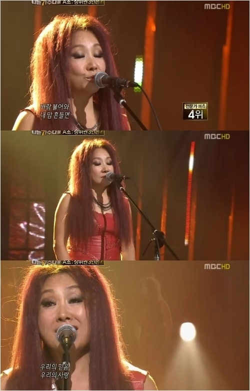 한영애는 7일 방송된 MBC 예능 프로그램 ‘일밤-나는 가수다2’(이하 ‘나가수2’)에서 나얼의 신곡 ‘바람기억’을 불렀다.