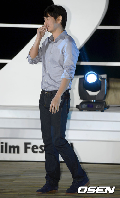 7일 오후 해운대 비프빌리지 야외무대에서 진행된 '내가 고백을 하면' 행사에서 김태우가 노래부르는 예지원을 바라보고 있다.