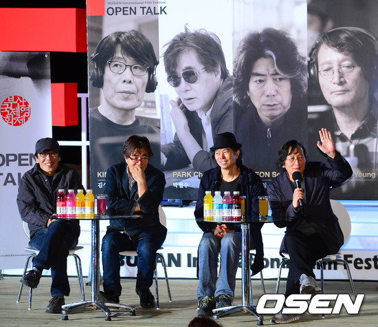7일 오후 부산 해운대 비프빌리지 야외무대에서 열린 오픈토크 행사에서 김성홍 박철수 전수일 정지영 감독이 관객과의 시간을 갖고 있다.