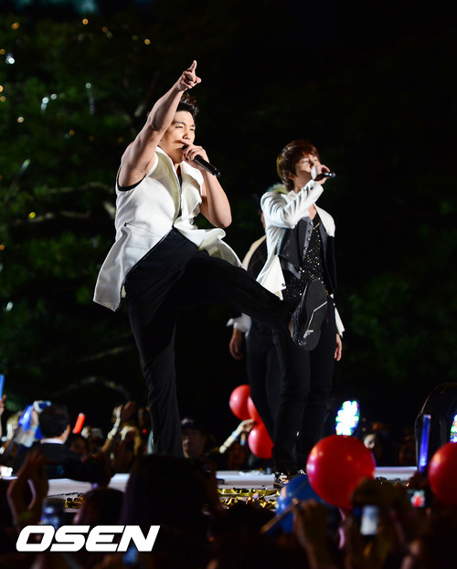 7일 오후 서울 강남구 코엑스 앞 영동대로 코엑스 특설무대에서 열린 2012 강남 페스티벌 K팝 콘서트 (한류 페스티벌)에서 슈퍼주니어가 화려한 무대를 선보이고 있다.