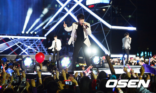 7일 오후 서울 강남구 코엑스 앞 영동대로 코엑스 특설무대에서 열린 2012 강남 페스티벌 K팝 콘서트 (한류 페스티벌)에서 슈퍼주니어가 화려한 무대를 선보이고 있다.