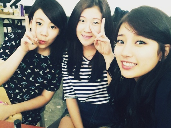 수지는 지난 7일 밤 자신의 트위터를 통해 "오늘 데뷔하는 피프틴앤드! 예린이랑 지민이랑"이라는 글과 사진 한 장을 게재했다.