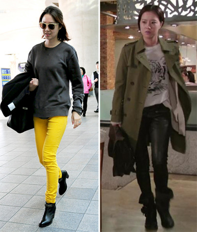 한 온라인 커뮤니티에서 배우 공효진과 문채원의 젓가락 각선미가 화제가 되고 있다. 두 사람은 각기 다른 디자인의 슈즈와 패션을 선보였지만, 각선미가 돋보이는 스키니진에 블랙워커를 착용해 눈길을 끈 것.