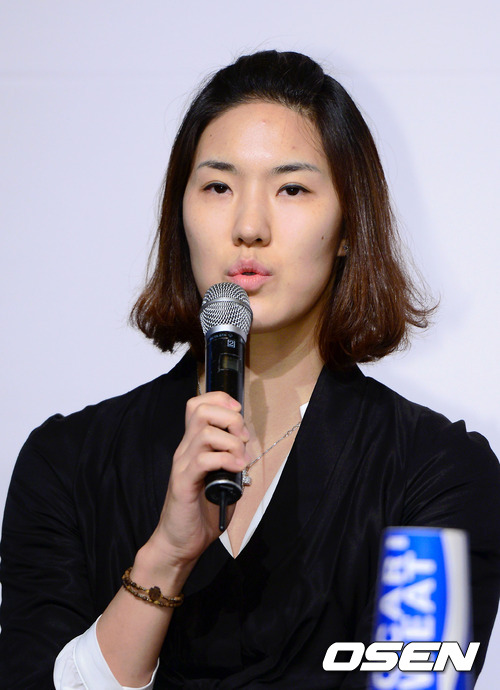 8일 오전 서울 플라자호텔에서 진행된 'KDB 금융그룹 2012-13 여자프로농구' 미디어데이 및 타이틀 스폰서 조인식에서 삼성생명 김계령이 출사표를 던지고 있다.