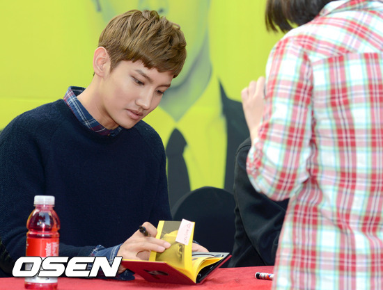 8일 오후 해운대 파라다이스 호텔 야외정원에서 열린 '동방신기 Catch Me 발매기념 사인회'에서 최강창민이 팬에게 사인을 해주고 있다.