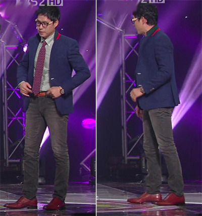 체크 무늬셔츠와 네이비 코트, 포인트 넥타이를 매치해 캐주얼한 룩을 선보인 유준상은 그만의 트레이드마크인 활동성 좋은 스키니 팬츠로 마무리해 ‘유준상 패션’을 완성했다.