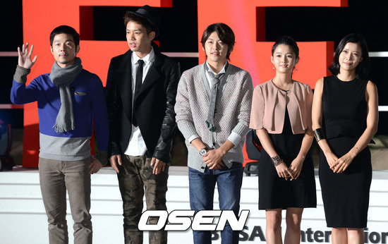 8일 오후 해운대 비프빌리지 야외무대에서 진행된 '돈 크라이 마미' 행사에서 이상민 권혁상 동호 남보라 유선이 포토타임을 갖고 있다.