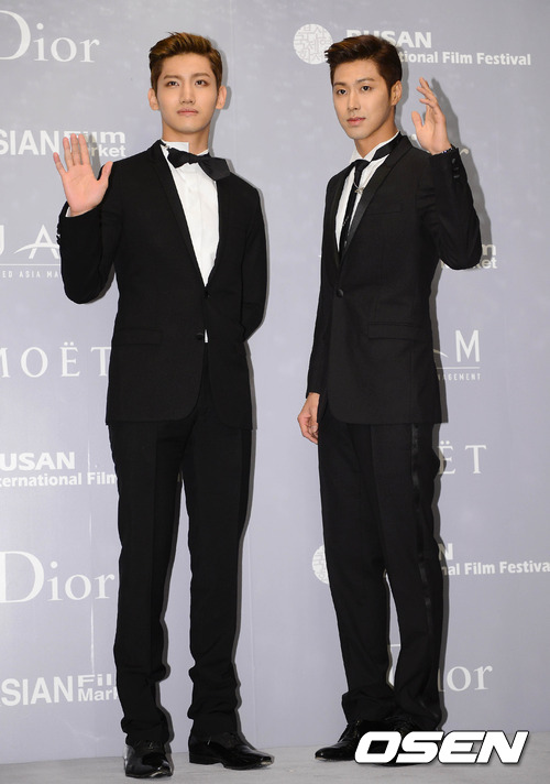 8일 오후 부산 해운대구 웨스틴 조선호텔에서 열린 '디올 후원의 밤'에 참석한 동방신기가 포토타임을 갖고 있다.