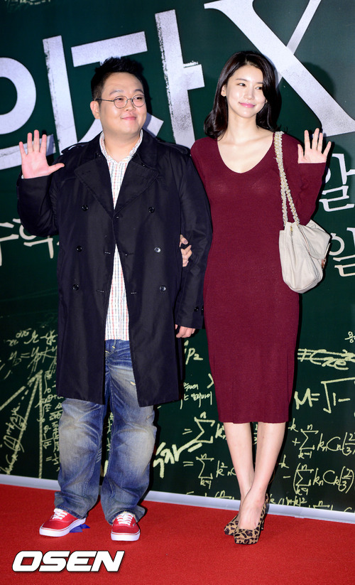 8일 오후 서울 CGV 왕십리에서 진행된 영화 '용의자 X' VIP 시사회에서 이건주, 오인혜가 포토타임을 갖고 있다.