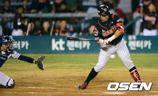 강민호는 8일 잠실구장에서 벌어진 '2012 팔도 프로야구' 두산 베어스와의 준 플레이오프 1차전에서 포수 6번 타자로 선발 출전했다.