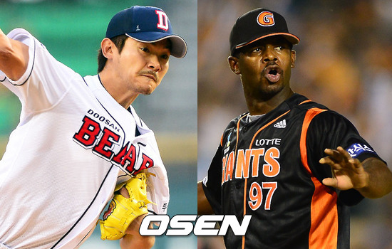 두산 베어스의 대기만성 우완 에이스가 된 노경은(28)과 올해 롯데 자이언츠의 좌완 에이스로 활약한 외국인 투수 셰인 유먼(33)이 9일 준플레이오프 2차전 선발로 나선다.