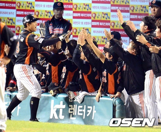 박준서의 번트안타에 이어 황재균이 왼쪽 담장으로 굴러가는 2루타를 날려 역전에 성공했다. 롯데는 이어진 1사후 손아섭의 스퀴즈번트때 두산 투수 김강률이 1루수와 충돌 직후 1루 악송구까지 겹쳐 주자 2명이 모두 홈을 밟아 8-5까지 달아나 승부를 결정냈다.