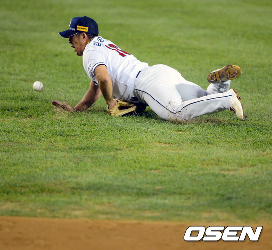 10회초 무사 2루 박준서의 보내기 번트때 두산 김승회 투수가 볼을 놓치며 안타를 허용하고 있다./ajyoung@osen.co.kr