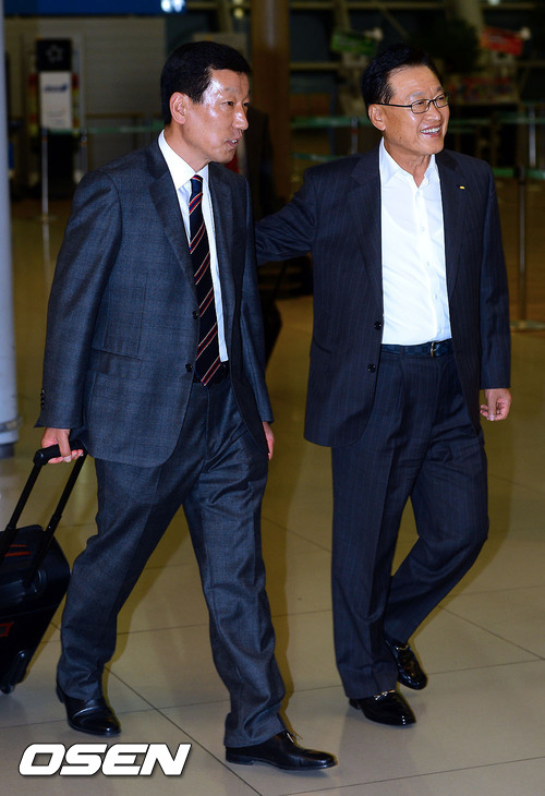 최강희 감독이 조중연 대한축구협회장과 이야기를 나누며 공항에 들어서고 있다. / sou1l1014@osen.co.kr
