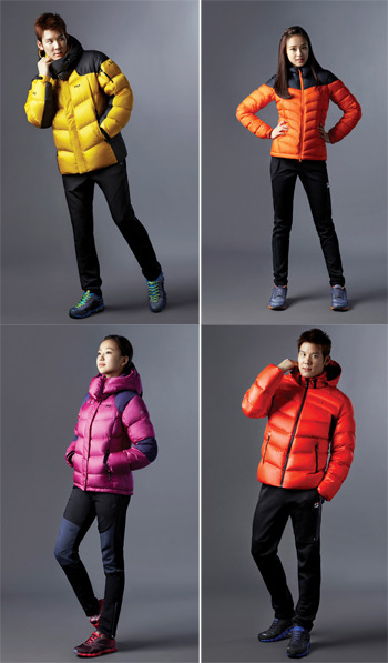 손연재와 박태환은 트렌드 컬러인 옐로우, 레드, 오렌지, 퍼플 등 비비드한 컬러가 돋보이는 다운재킷과 함께 슬림하게 피트 되는 블랙 팬츠를 매치해 스타일리시한 룩을 연출했다.
